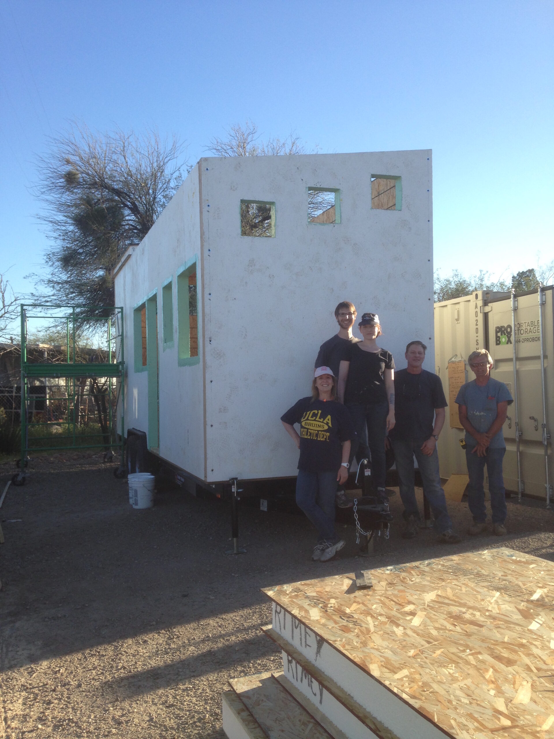 This week I’m in Tucson helping Courtney and Kurt Meyerhofer’s dream come true through a Build Blitz for their tiny house, affectionately dubbed the Cilantro Poncho. Yesterday and the day before we worked on Cilantro Poncho Build Blitz Prep and today is Day 1 of the Cilantro Poncho Build Blitz. We’re expecting five more people to come help out as we get everything ready for the wall raising on Day 2.